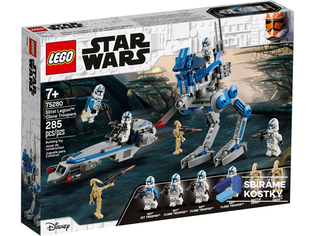 - Tato stavebnice z řady LEGO® Star Wars™ obsahuje 4 LEGO minifigurky: 3 klonované vojáky z 501. legie a letce z 501. legie, kteří jsou novinkou pro rok 2020 a kteří jsou vybaveni tryskami, a k tomu navíc 2 bitevní droidy s bitevními zbraněmi.